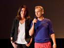 Isabelle Fougère et Miquel Dewever-Plana, lauréats du prix RFI/France 24 du webdocumentaire, lors de la remise du prix à Perpignan, le 4 septembre 2013. RFI/Anthony Ravera
