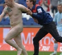 Nu comme un ver, avec les noms de sa femme et de son fils inscrits sur son dos, rapporte le quotidien suisse Le Matin. «Oui, j’étais bourré», a reconnu l’homme qui a eu cette idée lumineuse après un enterrement de vie de garçon. Au final, sa femme lui en veut encore plus et il va écoper d’une interdiction de stade pendant un an ainsi que d’une amende de 3.000 et 5.000 euros. Un vrai champion.