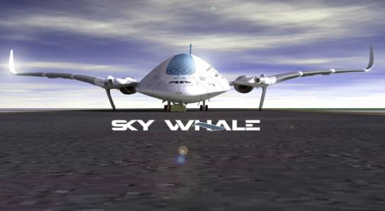 Baptisé « Sky Whale » (la baleine du ciel), cet avion géant est équipé d’ailes qui se réparent toutes seules, de grandes fenêtres et a de l’espace pour 750 personnes. Il y a trois ponts, un pour chaque classe de voyageurs.