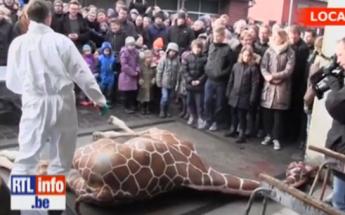 Marius, le girafon qui a été euthanasié ce dimanche matin au Danemark pour éviter la consanguinité entre girafes, a ensuite été dépecé et donné comme nourriture aux Lions. Les images sont choquantes, mais les visiteurs du zoo, parents et enfants, ont pu assister en direct à l’autopsie.