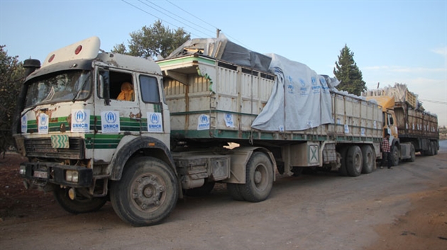 Au moins 18 camions chargés d’aide humanitaire endommagés