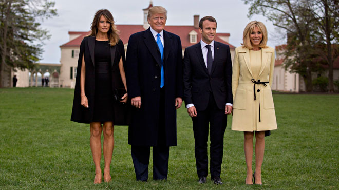 Emmanuel et Brigitte Macron viennent de visiter la Maison Blanche, sous la houlette de leur hôte. Les retrouvailles ont été chaleureuses entre les deux dirigeants qui ces derniers mois ont alterné les dissensions — sur le climat, le commerce, l’Iran — et les alliances, contre Daech et surtout pour des représailles conjointes contre les sites d’armes chimiques en Syrie.
