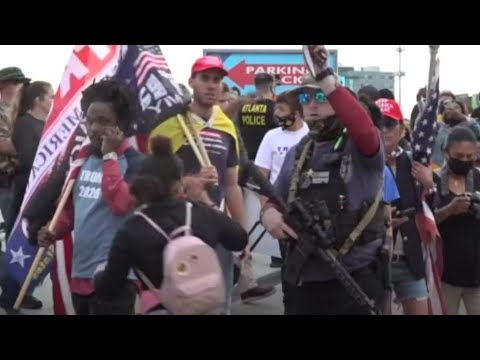 La tension est montée d’un cran, samedi, à l’annonce de la victoire de Joe Biden dans les rues d’Atlanta, où se sont rendus les envoyés spéciaux de France 24. Armés, supporters de Donald Trump et sympathisants du candidat démocrate se font face. La police est intervenue pour disperser la foule.
