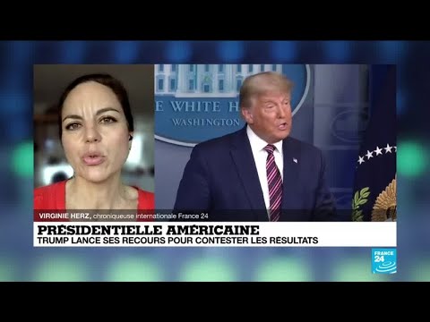 Donald Trump prévoit d’organiser une série de rassemblements destinés à contester les résultats de l’élection présidentielle aux Etats-Unis et à rassembler les soutiens derrière les batailles engagées devant les tribunaux, a confirmé le 8 novembre le porte-parole de la campagne du président républicain sortant. L’analyse et les explications de Virginie Herz, chroniqueuse internationale France 24.