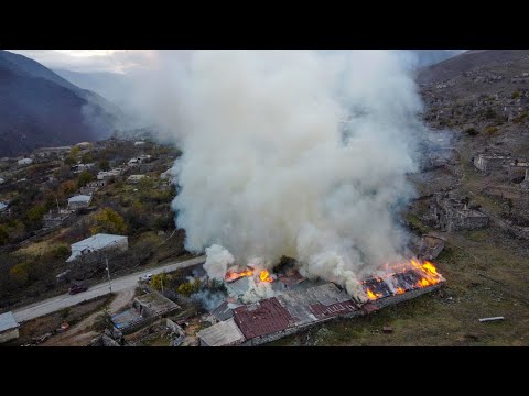 Alors que l’Azerbaïdjan doit reprendre le contrôle du Haut-Karabakh dimanche, des habitants de villages ont mis le feu à leurs maisons samedi, avant leur fuite vers l’Arménie, selon un journaliste de l’AFP. Les villageois disent préférer voir leur maison s’effondrer, plutôt que d’être utilisées par leurs rivaux.