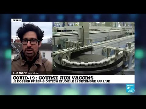 La campagne de vaccination contre le coronavirus dans l’Union européenne pourrait être lancée avant la fin du mois, a déclaré le 15 décembre la présidente de la Commission, Ursula von der Leyen, après la décision de l’Agence européenne des médicaments (EMA) d’avancer au 21 décembre l’examen du dossier du candidat vaccin de Pfizer et BioNTech, plus d’explications avec la correspondance France 24 de Luc André à Berlin.