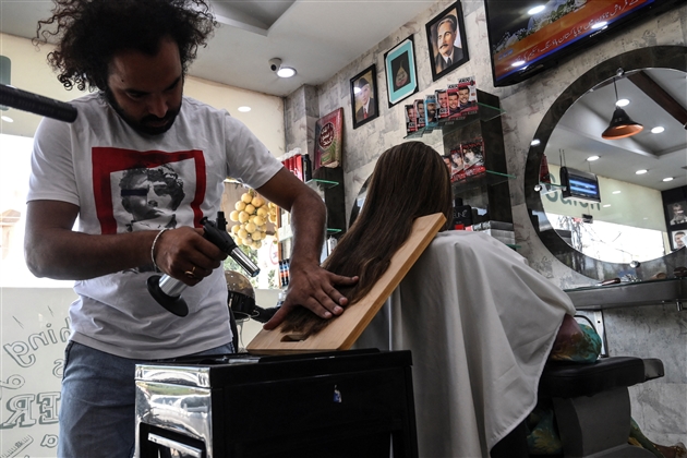 « Je me suis fait couper les cheveux trois fois dans ce salon », dit l’une d’elle, Arooj Bhatti. « Je préfère si c’est fait avec un hachoir, car mes cheveux poussent vite après. »