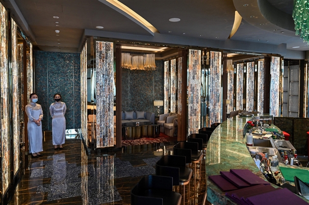 Il compte 165 chambres dont certaines aux prix vertigineux, comme la plus belle suite avec chandeliers en cristal et sauna qui s’affiche à 67.000 yuans (8.660 euros) pour une réservation samedi soir.