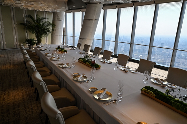 Le restaurant situé au 120e étage et la piscine au 88e font partie des principales attractions de cet hôtel dont l’ouverture a été retardée par la crise sanitaire.