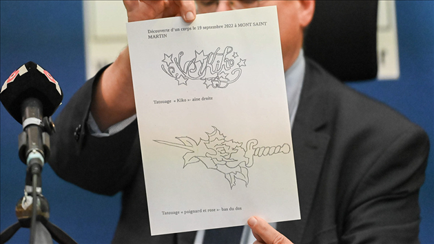 La victime, pas encore identifiée, portait un piercing au nombril et deux tatouages, l’un à l’aine droite mentionnant le mot « Kiko« , sans doute un « surnom », l’autre en bas du dos représentant un poignard et une rose, a précisé le magistrat, qui a distribué à la presse des dessins de ces tatouages.